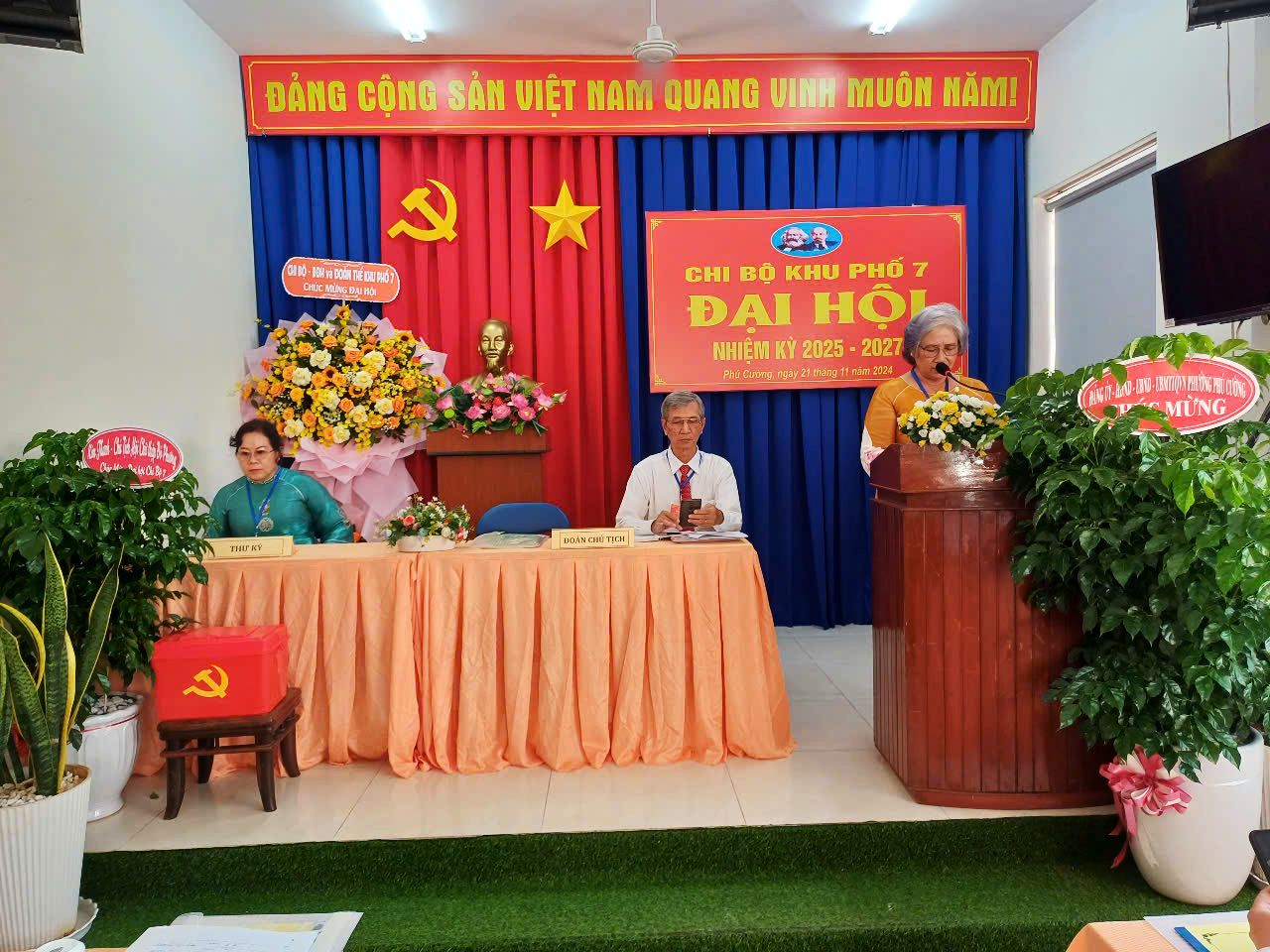 Chiều ngày 21/11/2024, tại văn phòng Ban điều hành khu phố 7, đã diễn ra Đại hội Chi bộ khu phố 7, nhiệm kỳ 2025-2027. Đây là sự kiện chính trị quan trọng trong công tác xây dựng Đảng tại cơ sở, hướng tới Đại hội Đại biểu Đảng bộ phường Phú Cường lần thứ XVIII, nhiệm kỳ 2025-2030.