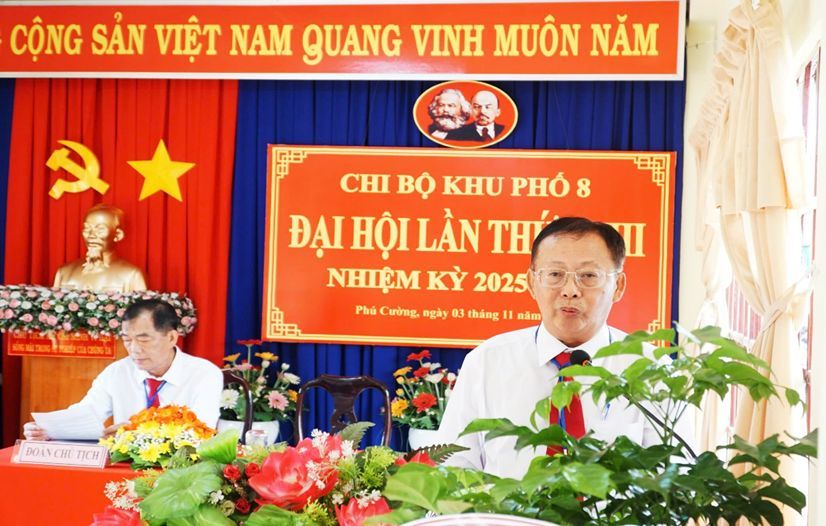 Sáng ngày 03/11/2024, tại Văn phòng Ban điều hành khu phố 8, phường Phú Cường đã diễn ra Đại hội Chi bộ khu phố 8 lần thứ XXIII, nhiệm kỳ 2025-2027, đánh dấu một sự kiện chính trị quan trọng của Chi bộ khu phố 8 với vai trò là đại hội điểm của phường.