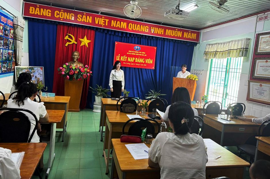 CHI BỘ TRƯỜNG MẦM NON HOA LAN – PHƯỜNG PHÚ CƯỜNG TỔ CHỨC LỄ KẾT NẠP ĐẢNG VIÊN MỚI