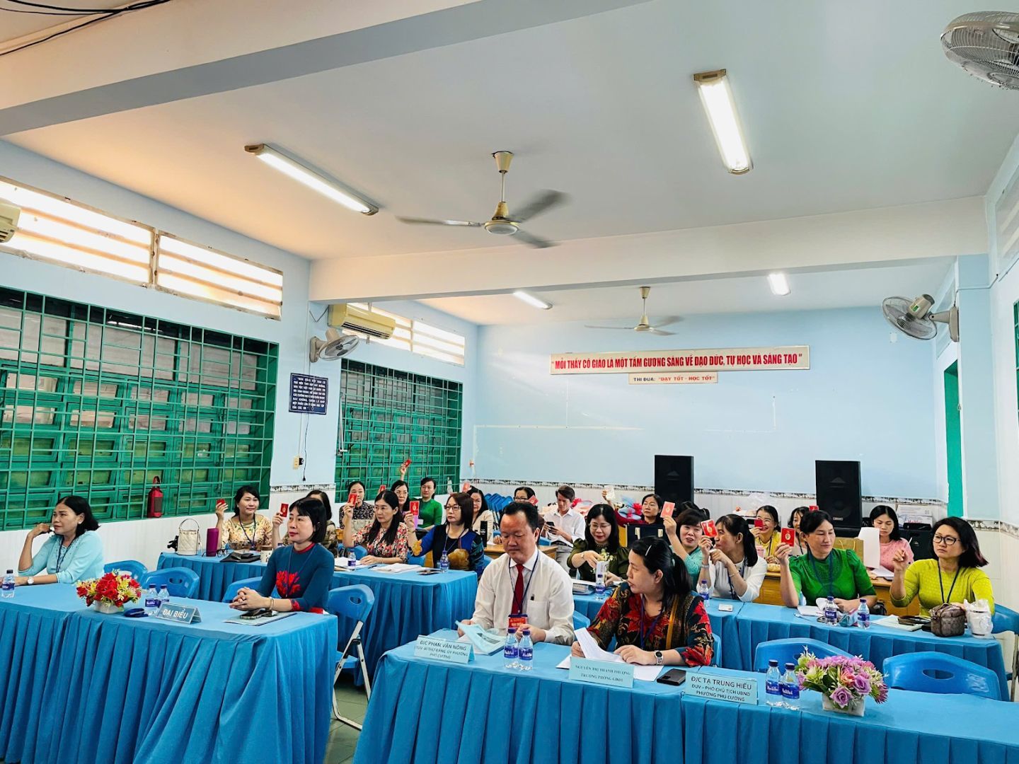 Các đại biểu dự Đại hội đã được nghe báo cáo tổng kết, đánh giá hoạt động nhiệm kỳ 2022-2025 và đề ra phương hướng, nhiệm vụ trọng tâm trong nhiệm kỳ mới. Trong báo cáo đã nêu rõ Chi ủy chi bộ trong nhiệm kỳ qua đã kết nạp cho 03 quần chúng ưu tú vào Đảng và giới thiệu 02 công đoàn viên ưu tú tham gia lớp bồi dưỡng đối tượng kết nạp đảng, đạt 200% chỉ tiêu đảng ủy phường giao; Chi bộ đã đề cử 1 đảng viên tham gia học lớp Trung cấp chính trị.; Chú trọng việc tu dưỡng rèn luyện đạo đức theo tư tưởng, đạo đức, phong cách Hồ Chí Minh và theo phương châm “Mỗi thầy cô là tấm gương tự học, tự sáng tạo”. Bên cạnh việc thực hiện tốt công tác Đảng, Chi ủy Chi bộ còn quan tâm chỉ đạo sâu sát việc dạy và học. Tỉ lệ học sinh lên lớp hàng năm đạt 100%, tỉ lệ không có học sinh bỏ học đạt 100%.