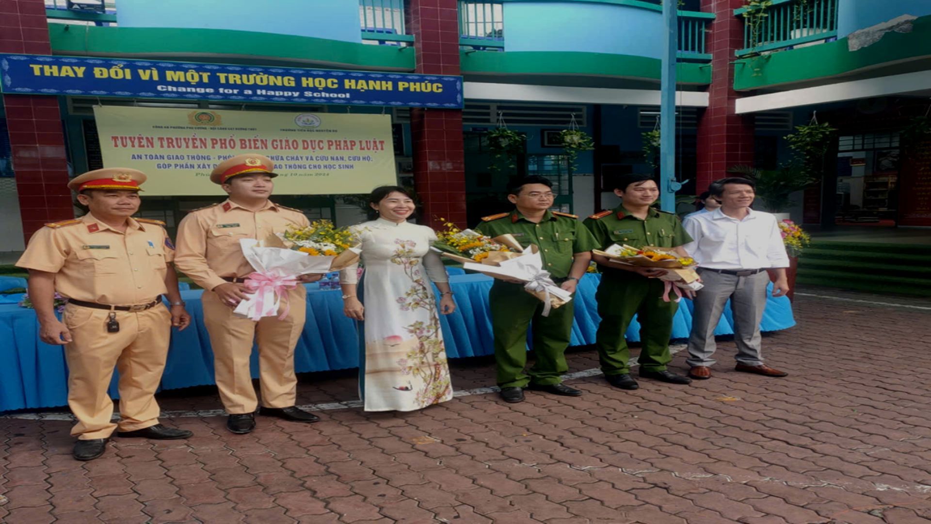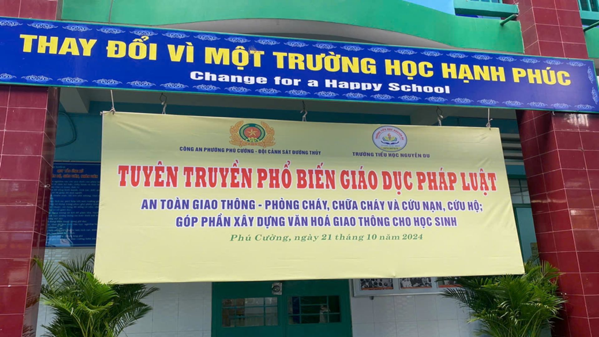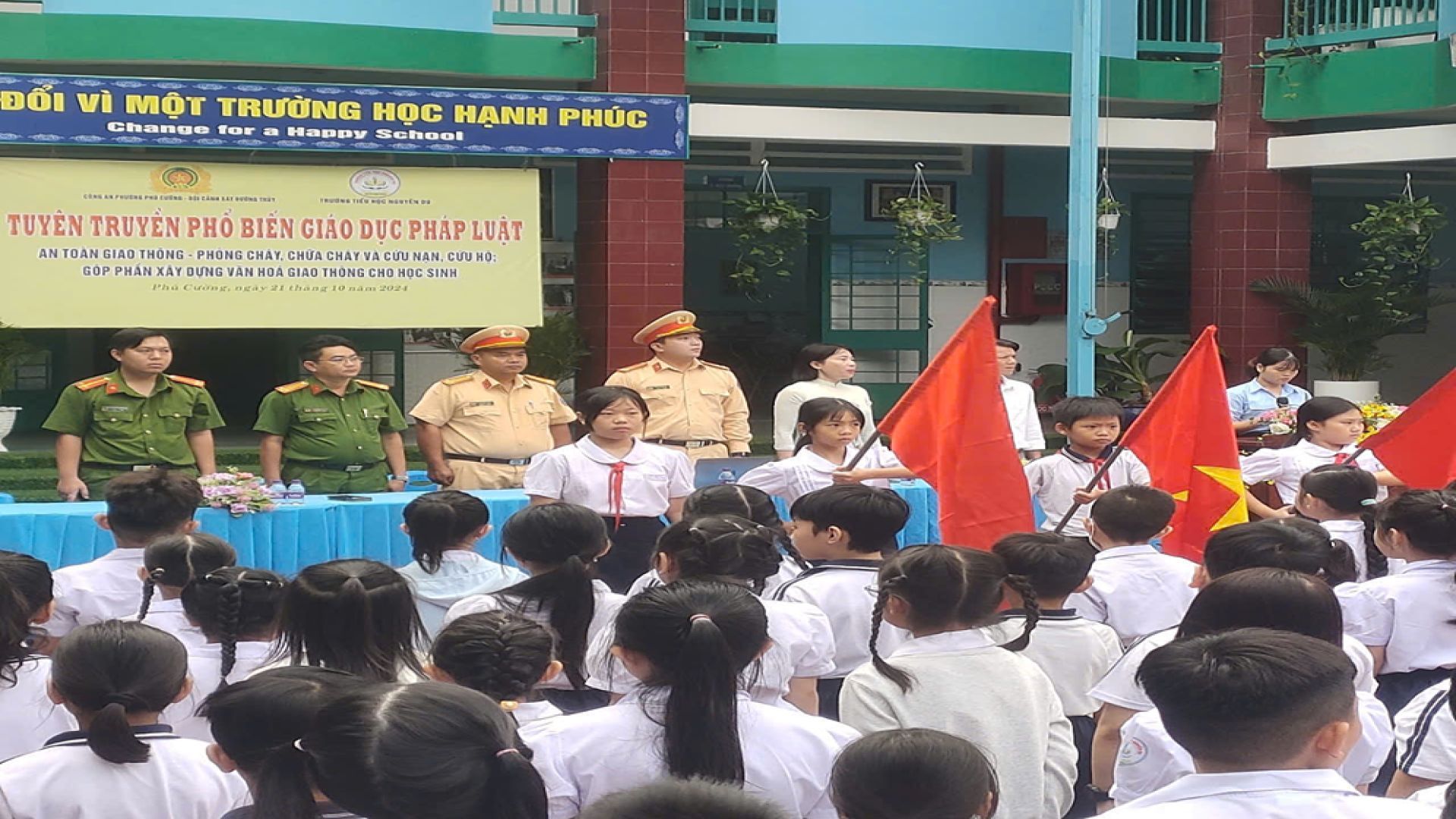 Sáng ngày 21/10/2024, tại trường Tiểu học Nguyễn Du, Công an phường Phú Cường đã phối hợp cùng Phòng Cảnh sát giao thông – Công an tỉnh Bình Dương và Đội Phòng cháy chữa cháy – Công an thành phố Thủ Dầu Một tuyên truyền, hướng dẫn kỹ năng về công tác Phòng cháy chữa cháy (PCCC) và tuyên truyền về Luật giao thông đường bộ cho 820 giáo viên và học sinh toàn trường.