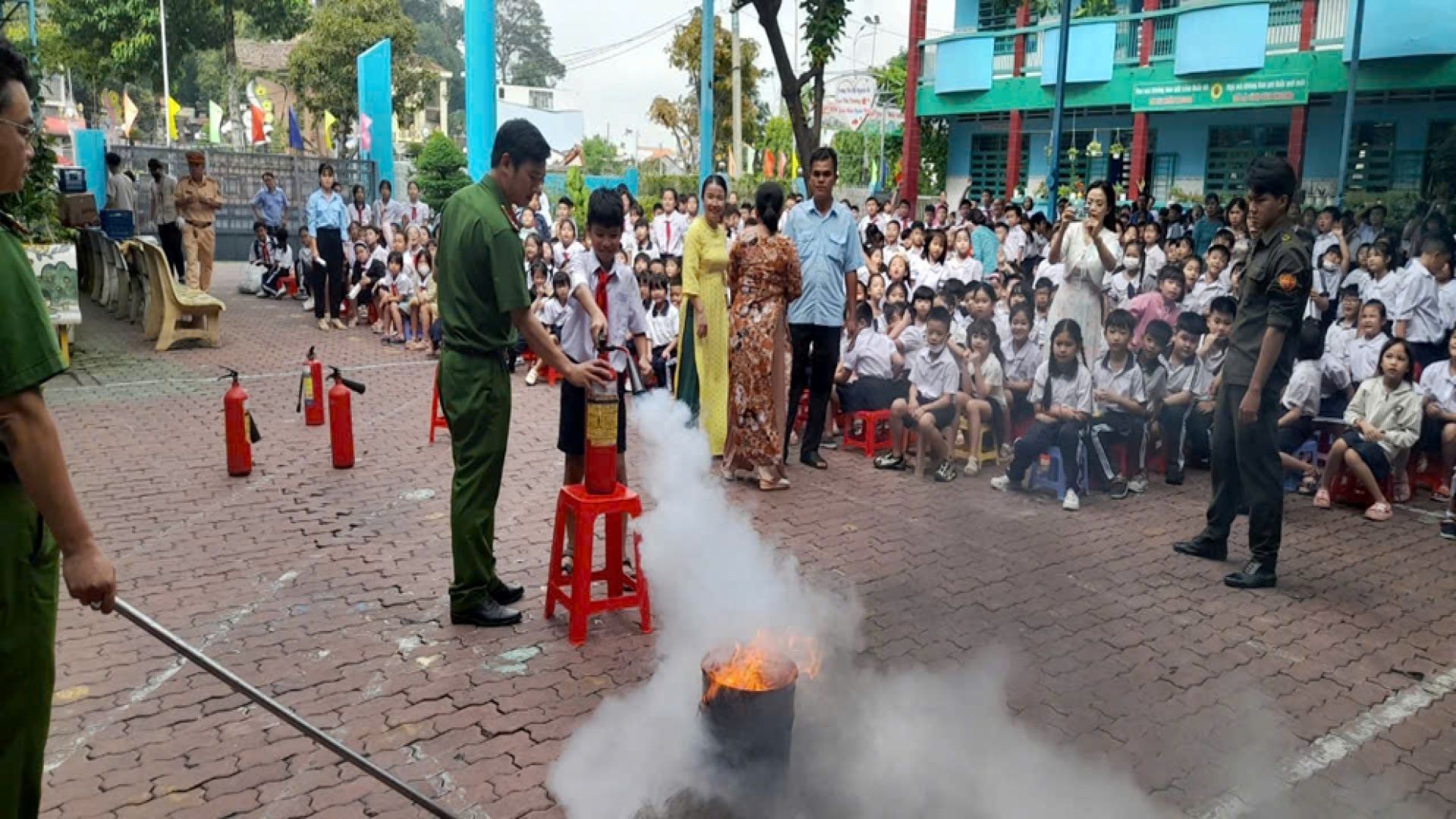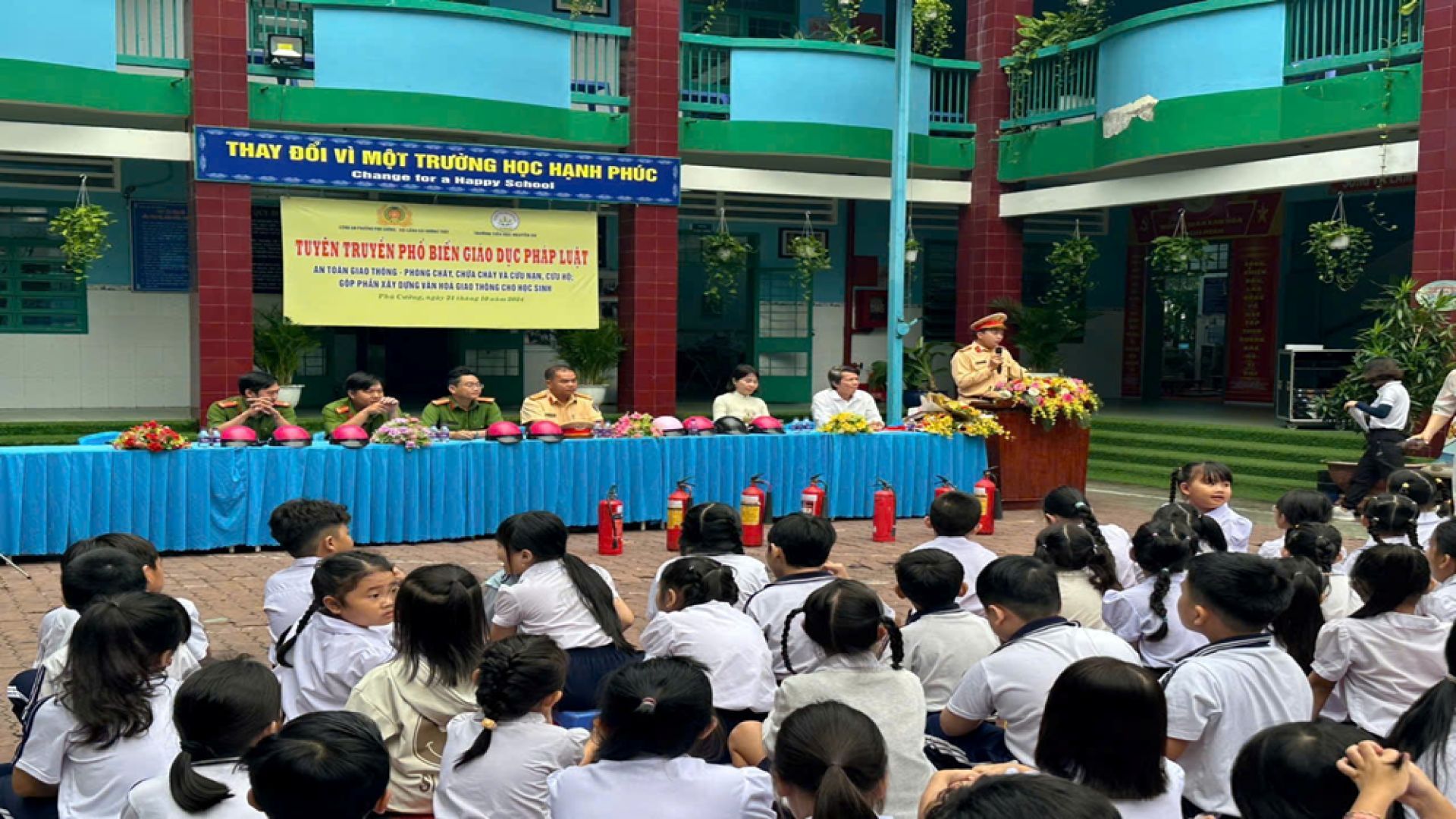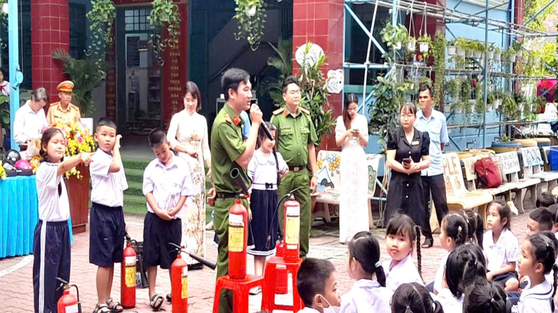 Sáng ngày 21/10/2024, tại trường Tiểu học Nguyễn Du, Công an phường Phú Cường đã phối hợp cùng Phòng Cảnh sát giao thông – Công an tỉnh Bình Dương và Đội Phòng cháy chữa cháy – Công an thành phố Thủ Dầu Một tuyên truyền, hướng dẫn kỹ năng về công tác Phòng cháy chữa cháy (PCCC) và tuyên truyền về Luật giao thông đường bộ cho 820 giáo viên và học sinh toàn trường.