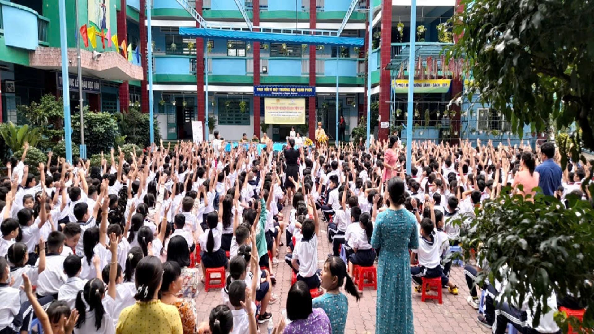 CÔNG AN PHƯỜNG PHÚ CƯỜNG PHỐI HỢP TUYÊN TRUYỀN CHO TRƯỜNG TIỂU HỌC NGUYỄN DU VỀ HƯỞNG ỨNG THÁNG AN TOÀN PHÒNG CHÁY CHỮA CHÁY