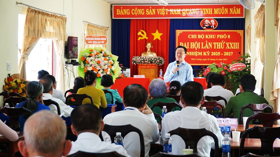 Thực hiện Kế hoạch số 138-KH/ĐU, ngày 18/9/2024 của BTV Đảng ủy phường Phú Cường về việc tổ chức đại hội chi bộ trực thuộc đảng bộ phường, nhiệm kỳ 2025 - 2027. Chi bộ Khu phố 8 là đơn vị điểm của phường tổ chức đại hội cấp cơ sở để rút kinh nghiệm chỉ đạo chung. Đại hội đã diễn ra thành công, với sự tham gia đông đảo của các đảng viên. Nội dung chương trình được chuẩn bị chu đáo, công tác tuyên truyền được thực hiện hiệu quả. Các đại biểu đã thảo luận sôi nổi về các vấn đề quan trọng trong việc phát triển kinh tế - xã hội của khu phố.
