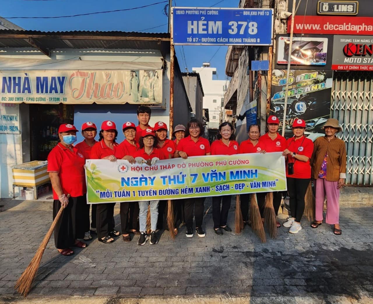 Sáng ngày 29/9/2024, Hội Chữ Thập đỏ phường Phú Cường tiếp tục duy trì thực hiện mô hình “Mỗi tuần 1 tuyến đường hẻm xanh – sạch – đẹp – văn minh”, tại tuyến hẻm 378 đường Cách mạng tháng 8, khu phố 13, phường Phú Cường. Các thành viên tham gia mô hình vận động nhân dân trên tuyến đường cùng dọn vệ sinh, tuyên truyền người dân bỏ rác thải đúng thời gian, đúng nơi quy định và hướng dẫn phân loại rác thải tại nhà và tuyên truyền các tiêu chí “03 không”, “04 tốt”, “người công dân 05 gương mẫu”, “ngày thứ bảy văn minh”. Ngoài ra, các thành viên tiếp tục vận động hội viên và nhân dân trồng cây, chăm sóc cây kiểng, cây thuốc nam, … tạo cảnh quan đô thị xanh – sạch – đẹp – văn minh.