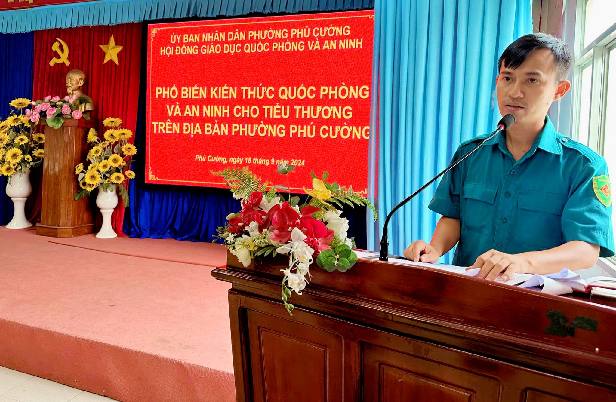 Chiều ngày 18/9/2024, Hội đồng giáo dục Quốc phòng và An ninh phường Phú Cường tổ chức Lớp phổ biến kiến thức Quốc phòng An ninh cho hơn 125 tiểu thương trên địa bàn phường.