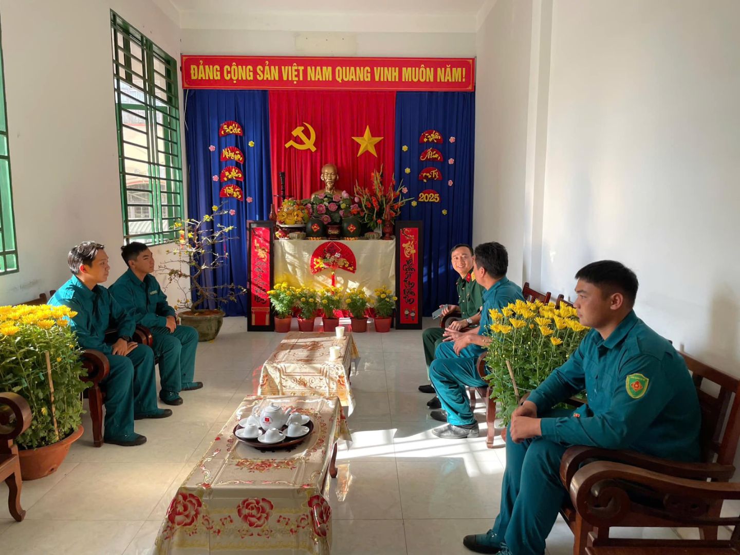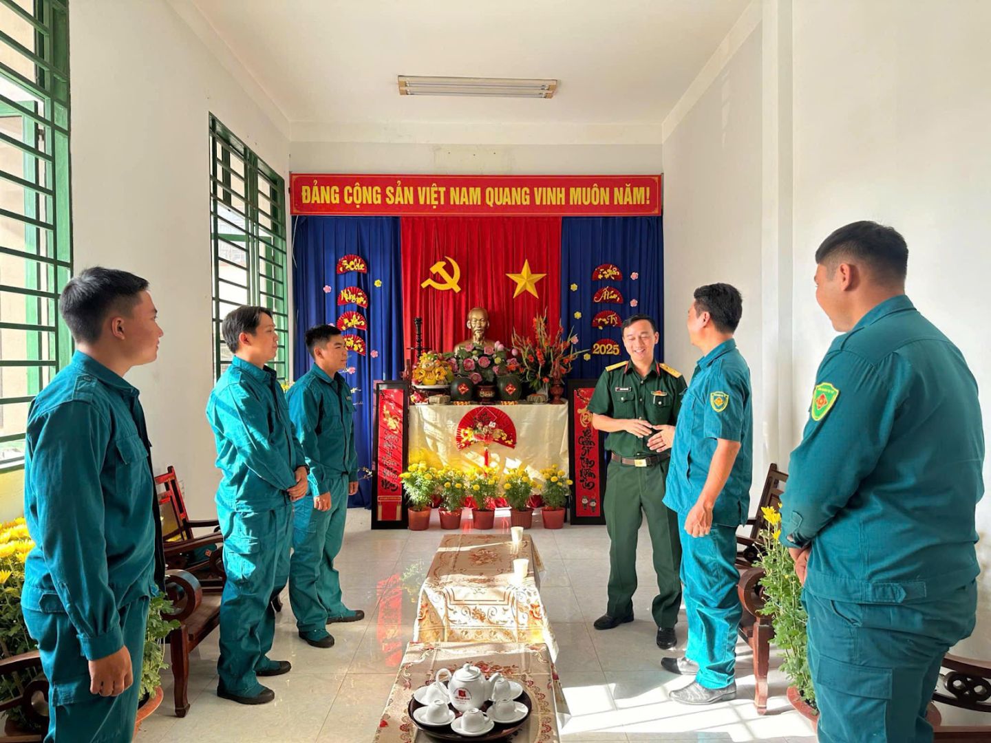 Chiều ngày 29/01/2025 (Mùng 1 Tết), đoàn lãnh đạo Đảng ủy- Ban CHQS thành phố do đồng chí Vương Trung Tiến – TUV - Chính trị viên/Ban CHQS thành phố làm trưởng đoàn đã đến thăm, chúc tết cán bộ, chiến sĩ Ban CHQS phường.