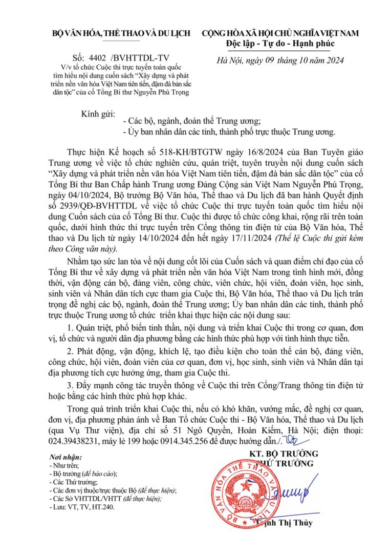 CÔNG VĂN CỦA BỘ VĂN HÓA, THỂ THAO VÀ DU LỊCH