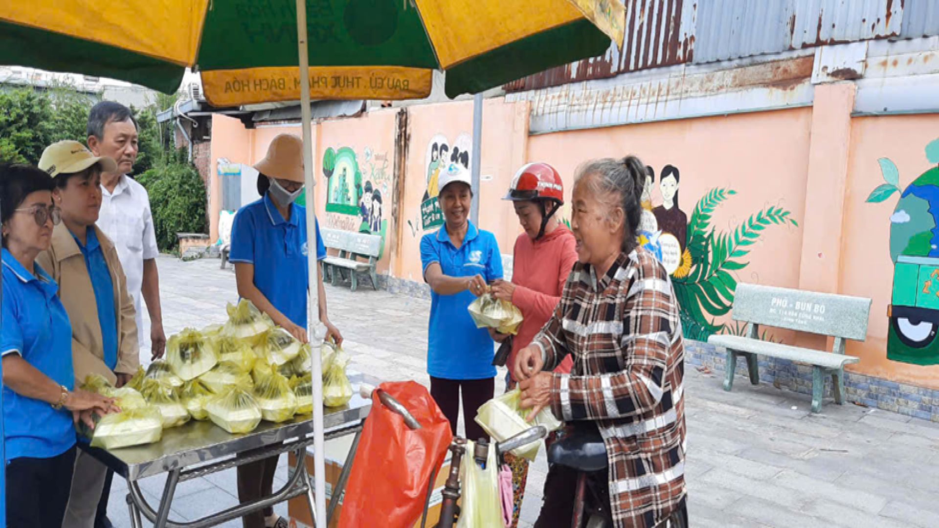 Sáng ngày 15/10/2024, Hội LHPN phường cùng chi hội phụ nữ khu phố 10 đã trao tặng 150 suất cơm miễn phí cho người dân tại Hoa viên Nhân ái khu phố 10.