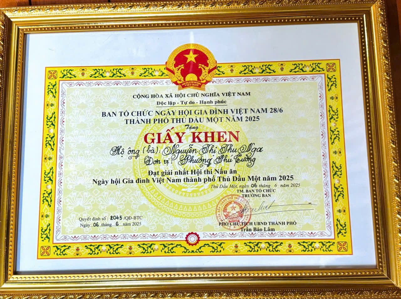 Vượt qua nhiều đội thi xuất sắc, đội thi Phường Phú Cường đã xuất sắc giành giải Nhất với thực đơn mang đậm bản sắc ẩm thực kết hợp trình bày tinh tế, sáng tạo. Các món ăn của đội được Ban giám khảo đánh giá cao cả về hương vị lẫn ý nghĩa gắn kết gia đình.