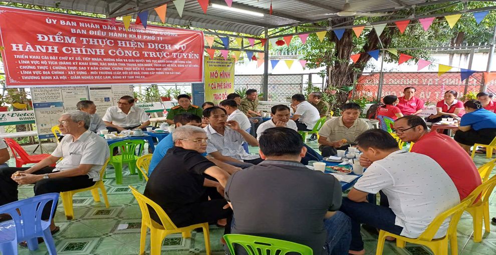 Người dân khu phố 11 tham dự buổi “Cà phê sáng – Trao đổi với nhân dân”