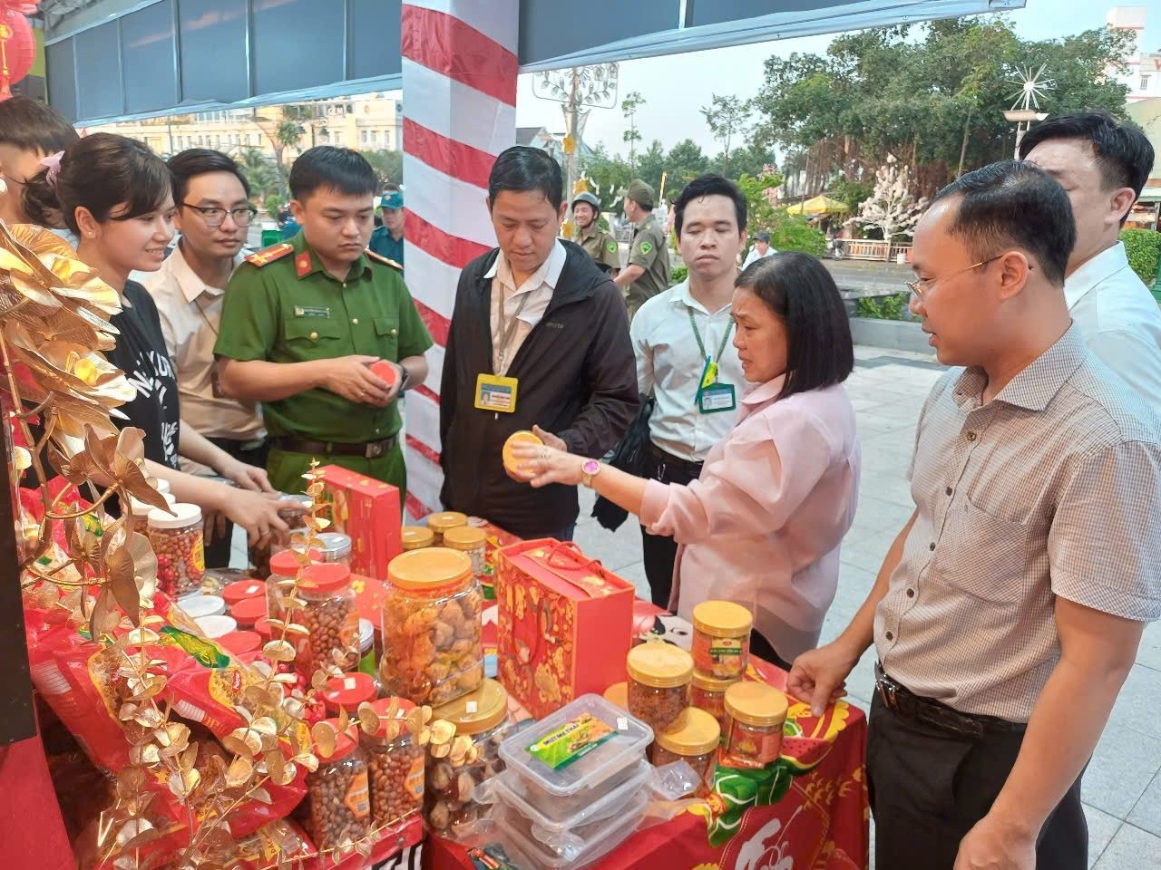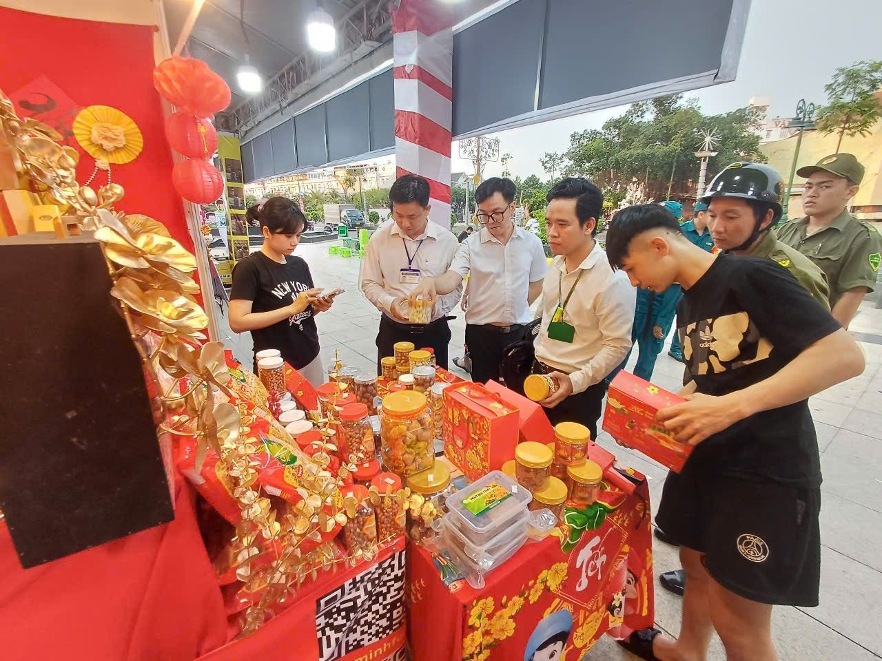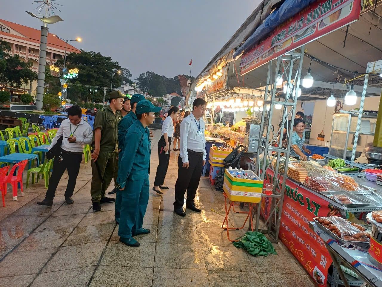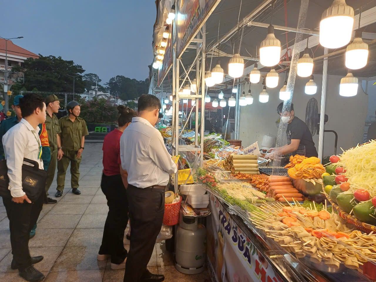 Nhằm mang đến cho người dân một không gian ẩm thực phong phú và an toàn. Tối ngày 30/12/2024 Tổ kiểm tra liên ngành văn hóa xã hội phường Phú Cường phối hợp cùng Đoàn kiểm tra liên ngành vệ sinh An toàn thực phẩm (ATTP) thành phố Thủ Dầu Một đã tiến hành kiểm tra và giám sát chặt chẽ các gian hàng tuân thủ quy định về vệ sinh ATTP; tất cả các sản phẩm được bày bán đều phải đảm bảo nguồn gốc xuất xứ rõ ràng và đạt tiêu chuẩn vệ sinh ATTP. Các gian hàng cũng được hướng dẫn cách bảo quản thực phẩm, đảm bảo không gây hại cho sức khỏe người tiêu dùng trong phiên chợ.
