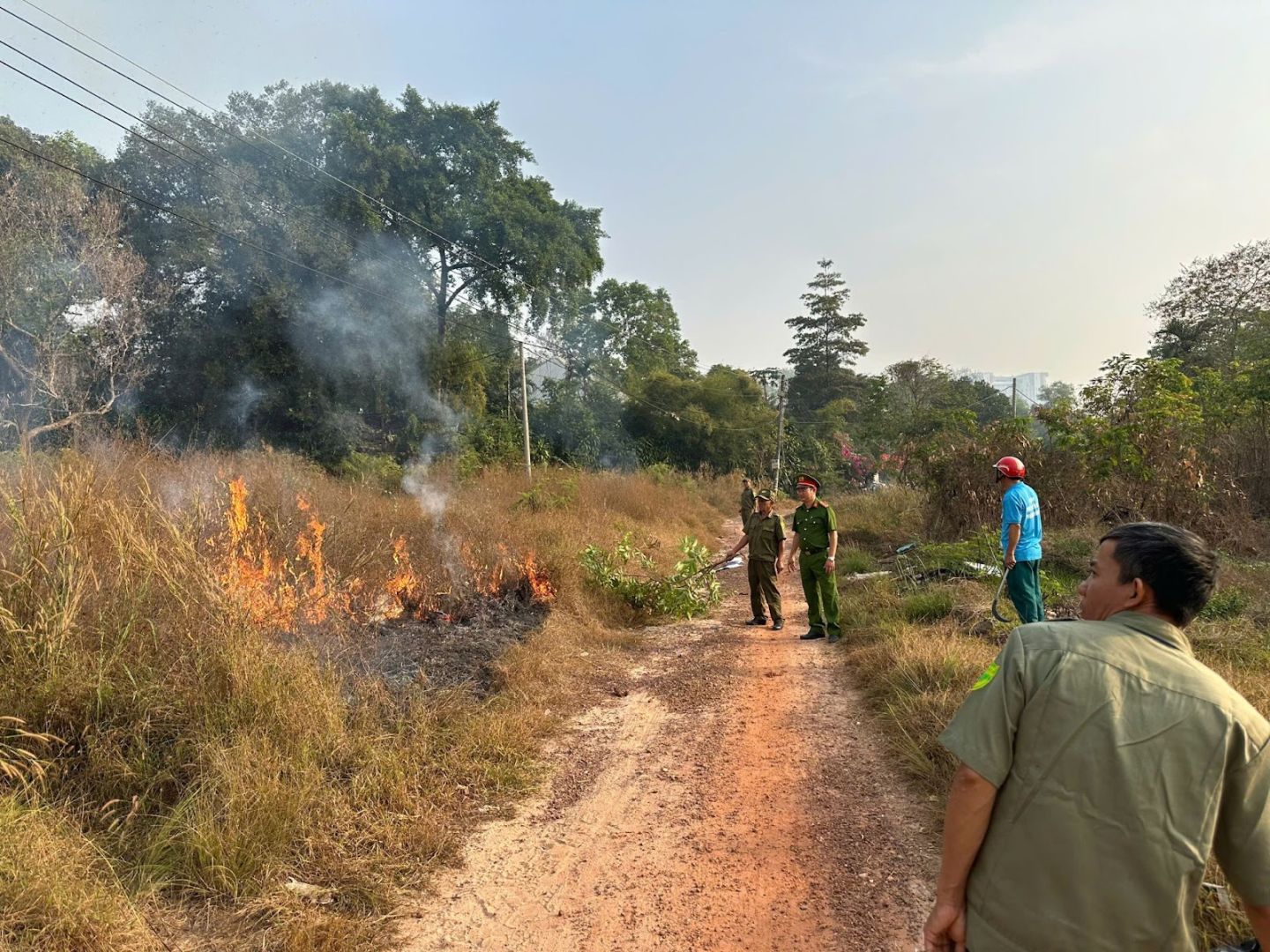 Trong buổi sáng, các lực lượng đã tiến hành phát quang các khu vực bụi rậm có nguy cơ gây cháy cao. Bên cạnh đó, lực lượng cũng tuyên truyền kiến thức PCCC cho người dân, nhấn mạnh tầm quan trọng của việc không được đốt rác hay đốt cỏ khi không có người trông coi và không có biện pháp bảo vệ an toàn.