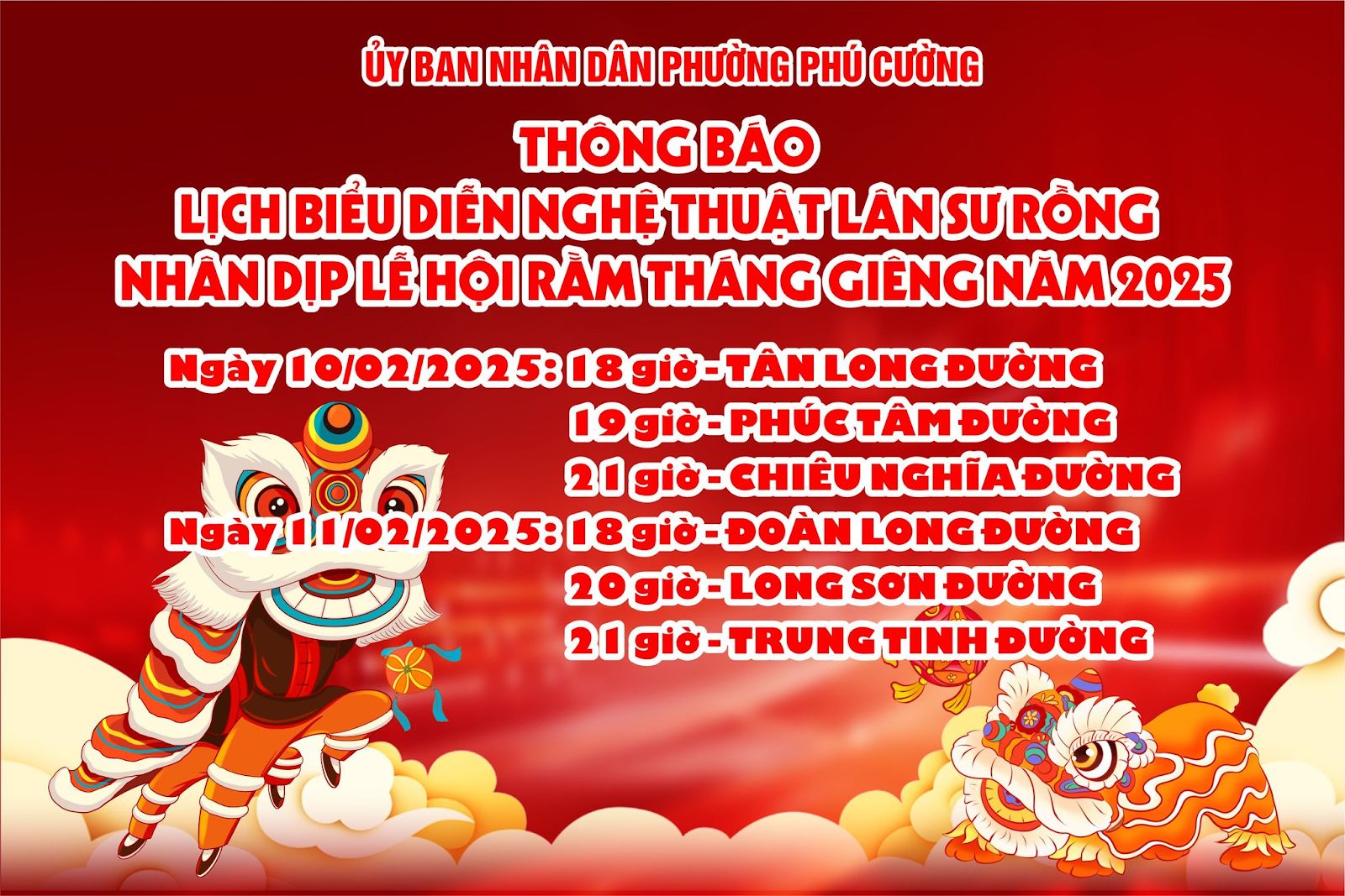 PHƯỜNG PHÚ CƯỜNG TỔ CHỨC BIỂU DIỄN NGHỆ THUẬT LÂN SƯ RỒNG NHÂN DỊP LỄ HỘI RẰM THÁNG GIÊNG NĂM ẤT TỴ 2025