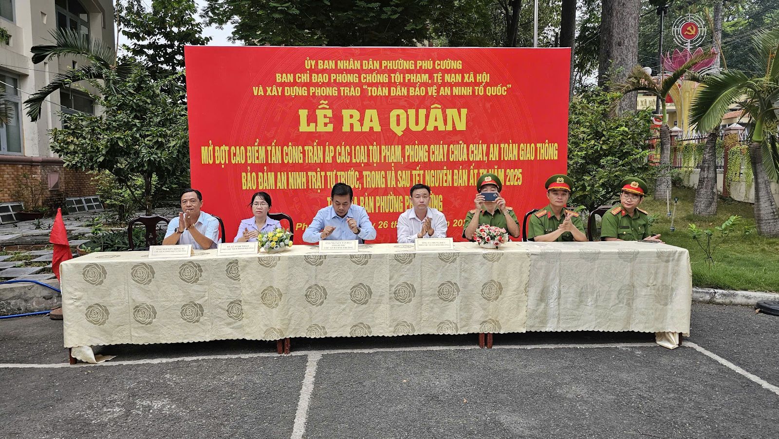 Đến dự buổi lễ có Ông Nguyễn Tấn Đạt – Phó Bí thư Đảng ủy, Chủ tịch UBND phường, Trưởng Ban Chỉ đạo 138 phường; Các Ông, Bà là Thành viên Ban chỉ đạo 138 phường. Tại buổi lễ, Ông Nguyễn Tấn Đạt – Phó Bí thư Đảng ủy, Chủ tịch UBND phường, Trưởng Ban Chỉ đạo 138 phường đã phát biểu chỉ đạo và phất cờ phát lệnh ra quân mở đợt cao điểm tấn công trấn áp các loại tội phạm; Phòng cháy chữa cháy; An toàn giao thông, đảm bảo an ninh, trật tự trước, trong và sau Tết Nguyên đán Ất Tỵ năm 2025 trên địa bàn phường Phú Cường.