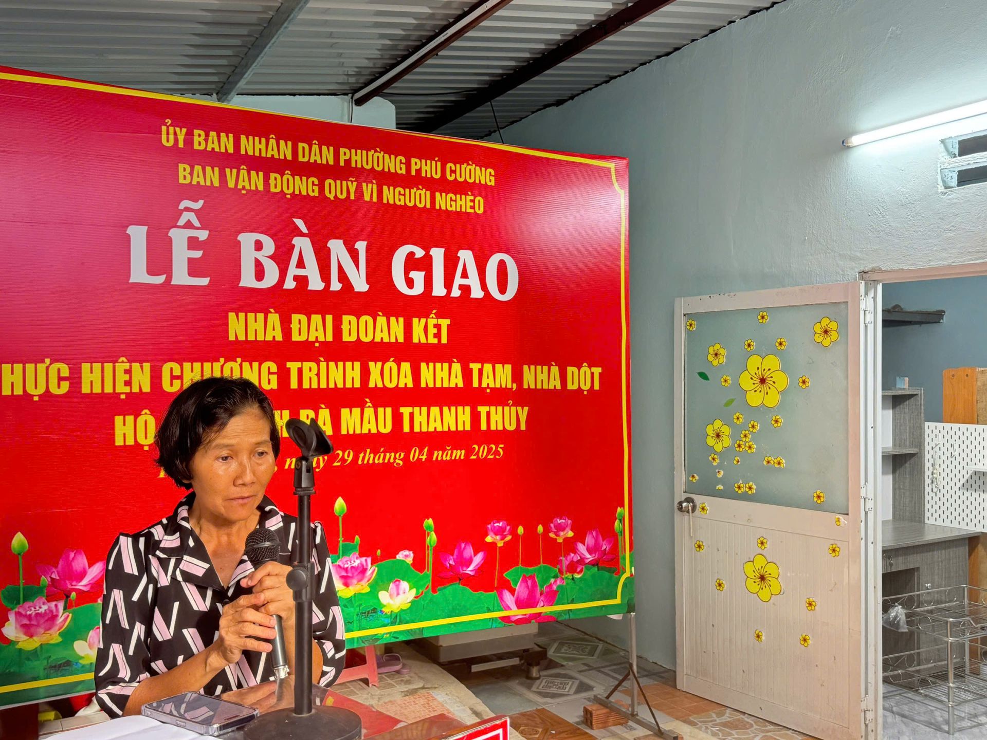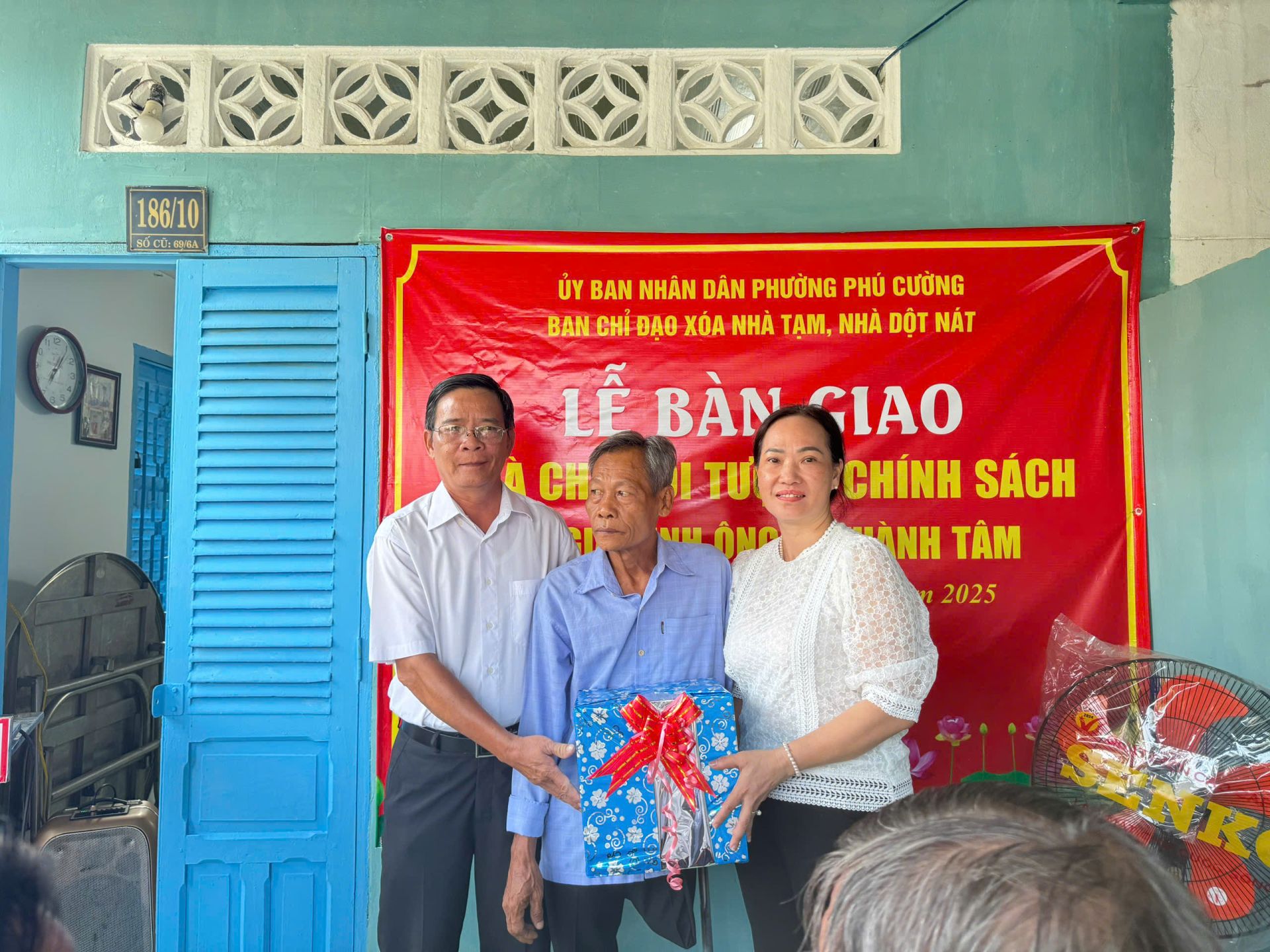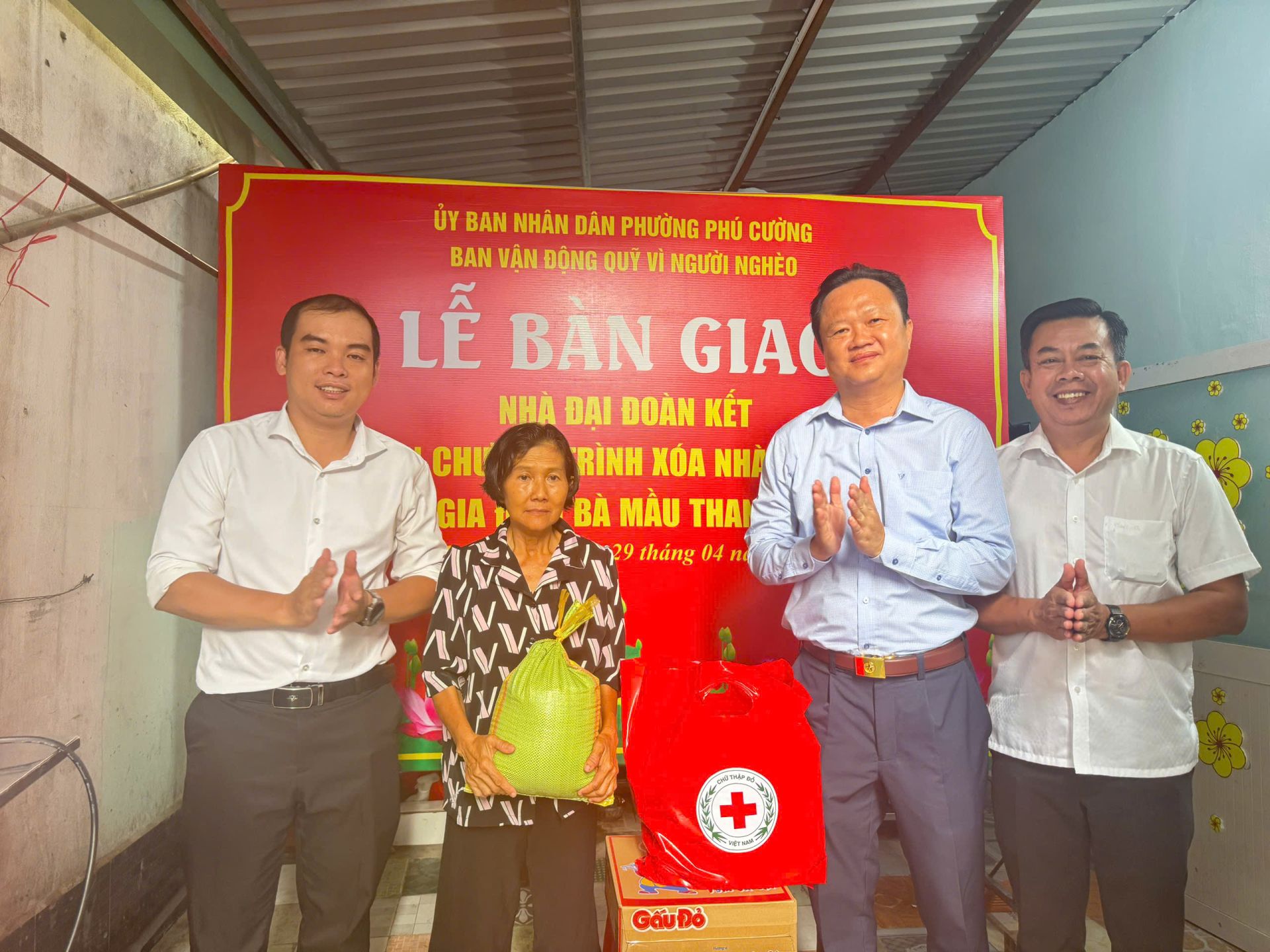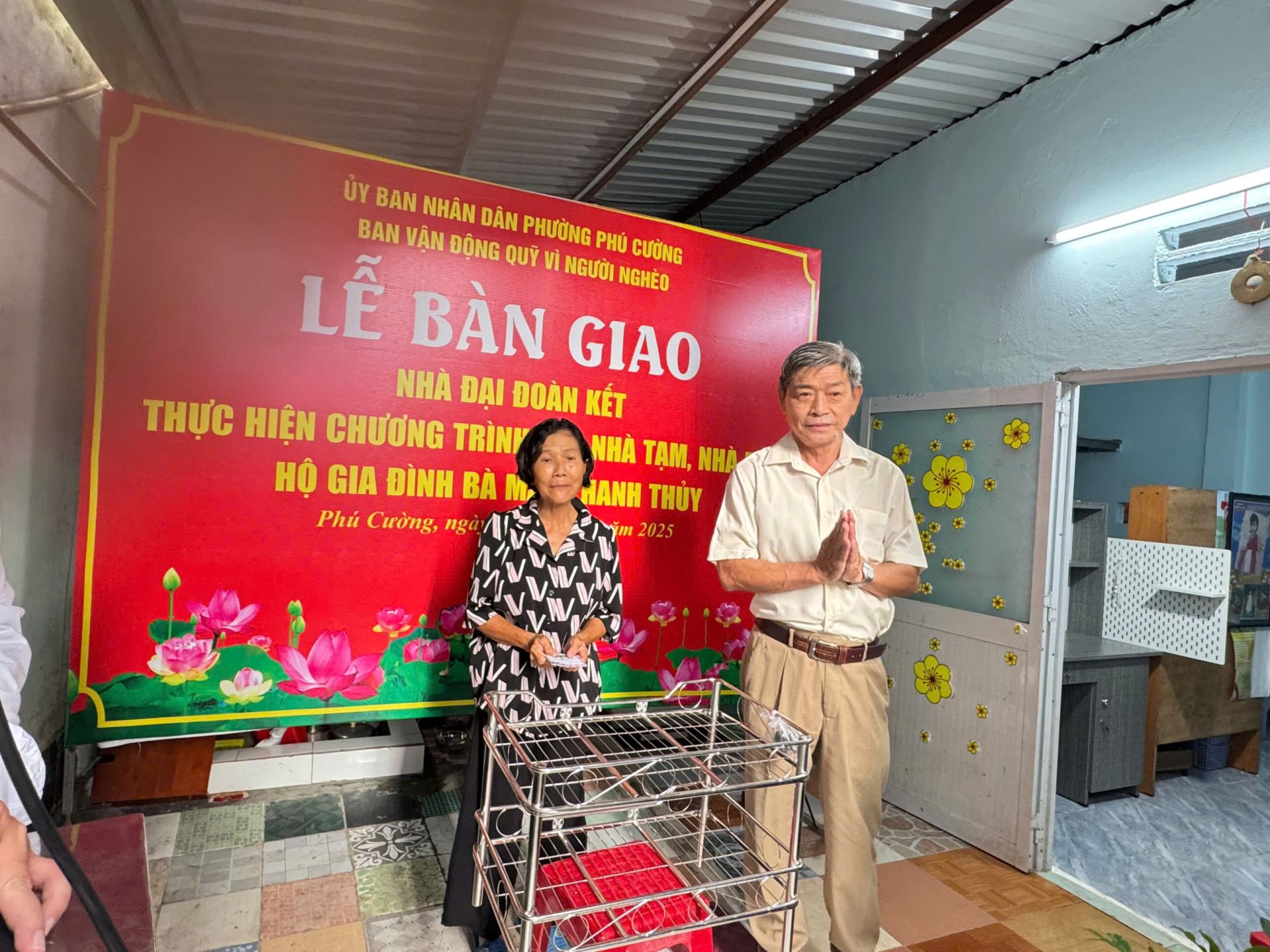 Trong buổi lễ, đại diện lãnh đạo địa phương cùng các đoàn thể, khu phố đã trao 02 căn nhà mới được sửa chữa khang trang, kiên cố với sự đóng góp từ Quỹ vì người nghèo của địa phương, UBND thành phố và sự hỗ trợ của các mạnh thường quân, giúp các hộ gia đình ổn định chỗ ở, vươn lên trong cuộc sống. Đây là hoạt động thiết thực nằm trong chương trình xóa nhà tạm, nhà dột nát và mang ý nghĩa nhân văn sâu sắc, thể hiện tinh thần “lá lành đùm lá rách”, đồng thời góp phần thực hiện chính sách an sinh xã hội, xây dựng phường Phú Cường ngày càng văn minh, nghĩa tình.