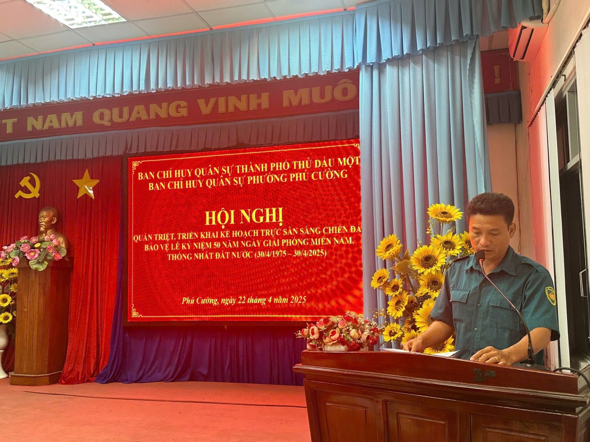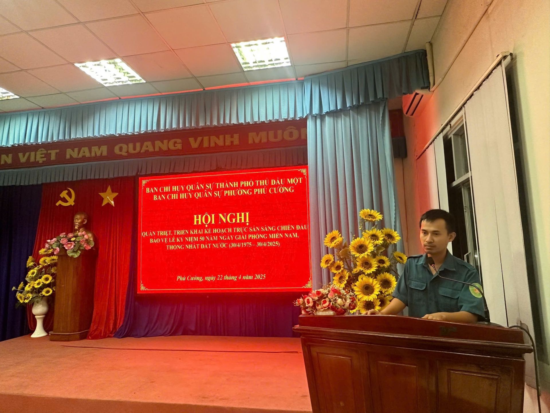 Nhằm bảo đảm an ninh, an toàn cho các hoạt động chào mừng Lễ kỷ niệm 50 năm Ngày Giải phóng Miền Nam, thống nhất đất nước (30/4/1975 – 30/4/2025), lực lượng Quân sự phường Phú Cường đã triển khai trực sẵn sàng chiến đấu theo đúng kế hoạch.