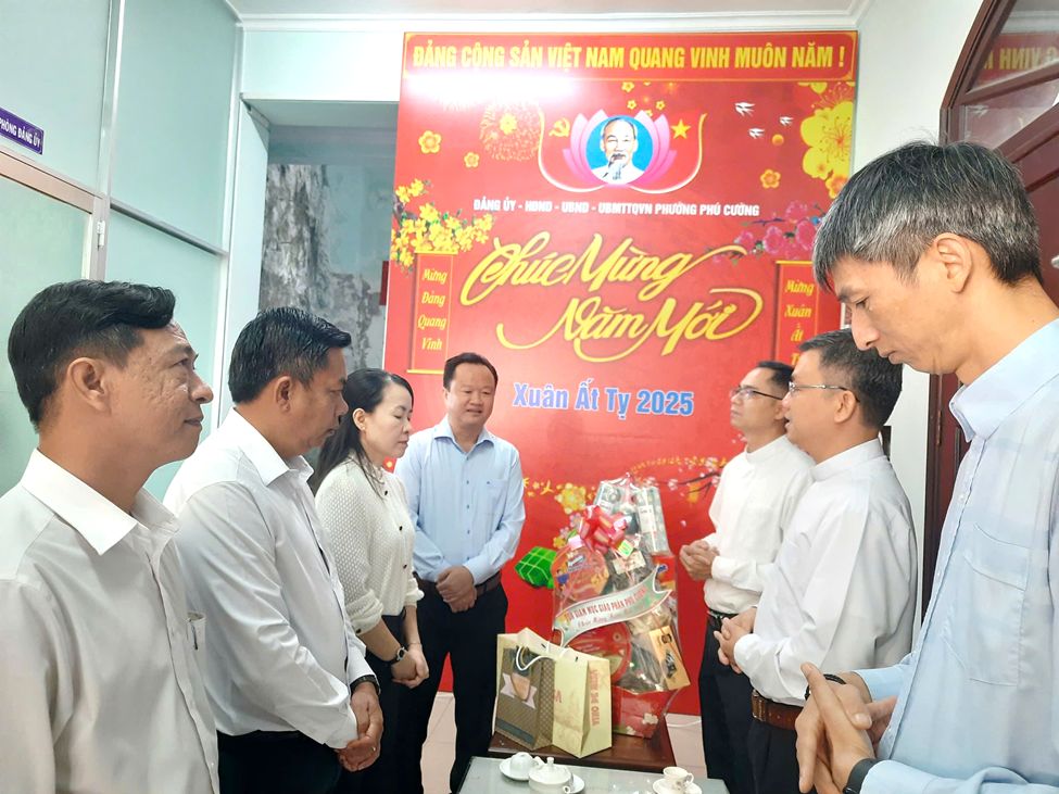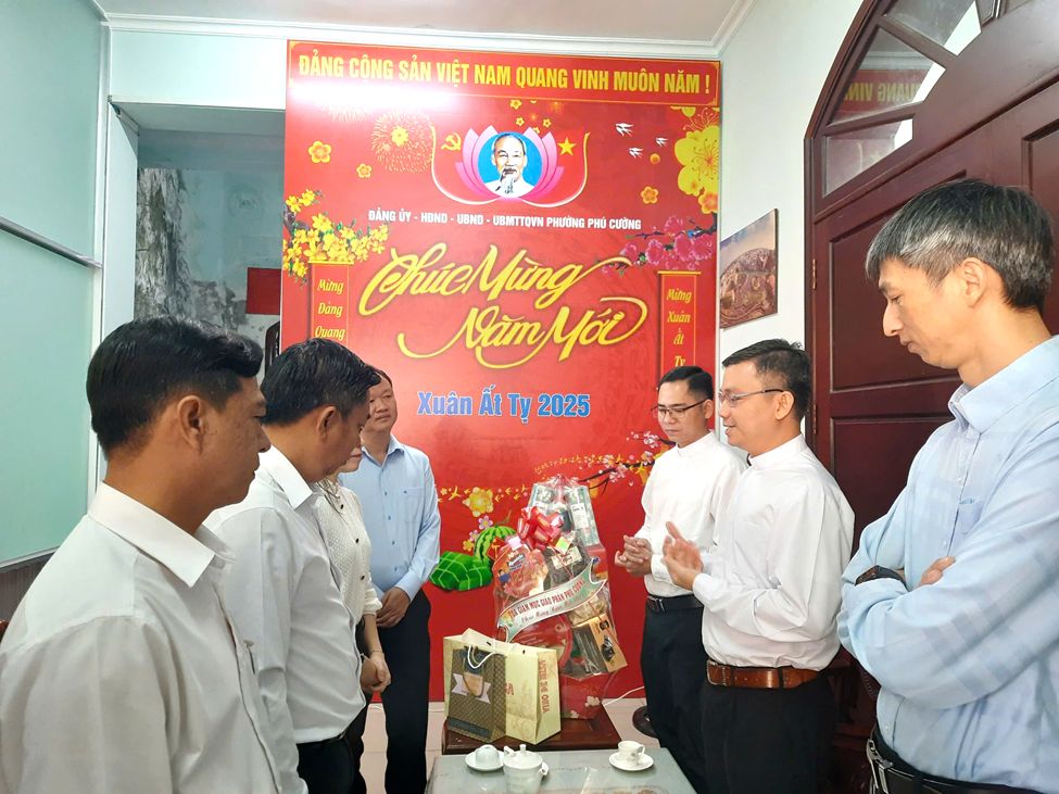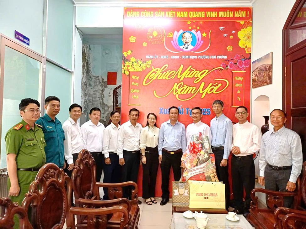 Nhân dịp chuẩn bị đón Tết cổ truyền của dân tộc Xuân Ất Tỵ 2025. Sáng ngày 13/01/2025, tại Đảng ủy phường Phú Cường, đoàn đại biểu Tòa Giám Mục Giáo phận Phú Cường cùng các linh mục, tu sĩ trong giáo phận đã đến thăm và chúc Tết lãnh đạo phường Phú Cường nhân dịp Tết Nguyên đán 2025.